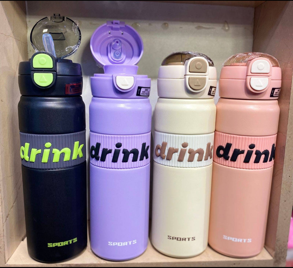 Stylish & Ergonomic: High-contrast color combos with 3D "DRINK" lettering and a ribbed grip for a comfortable hold.