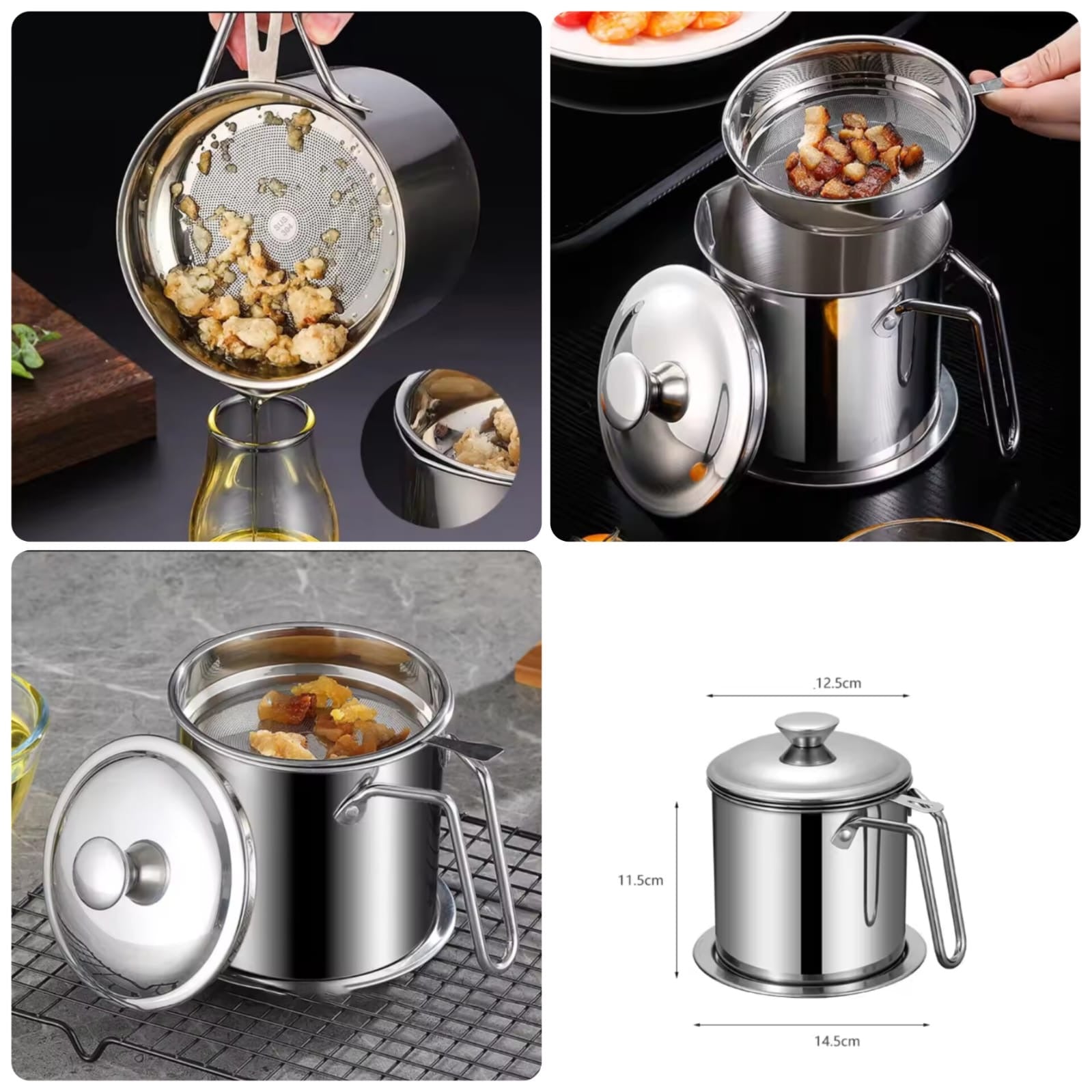 Oil Filter Pot — Stainless Steel / Heat-Resistant Container for Frying Oil & Grease Storage