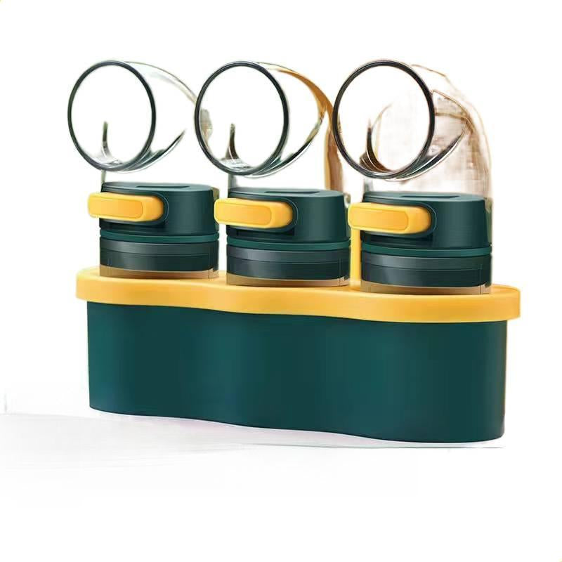 Precision Ratio Seasoning Dispenser Flask | Quantitative Salt & Spice Shaker (3pcs Set With Stand)