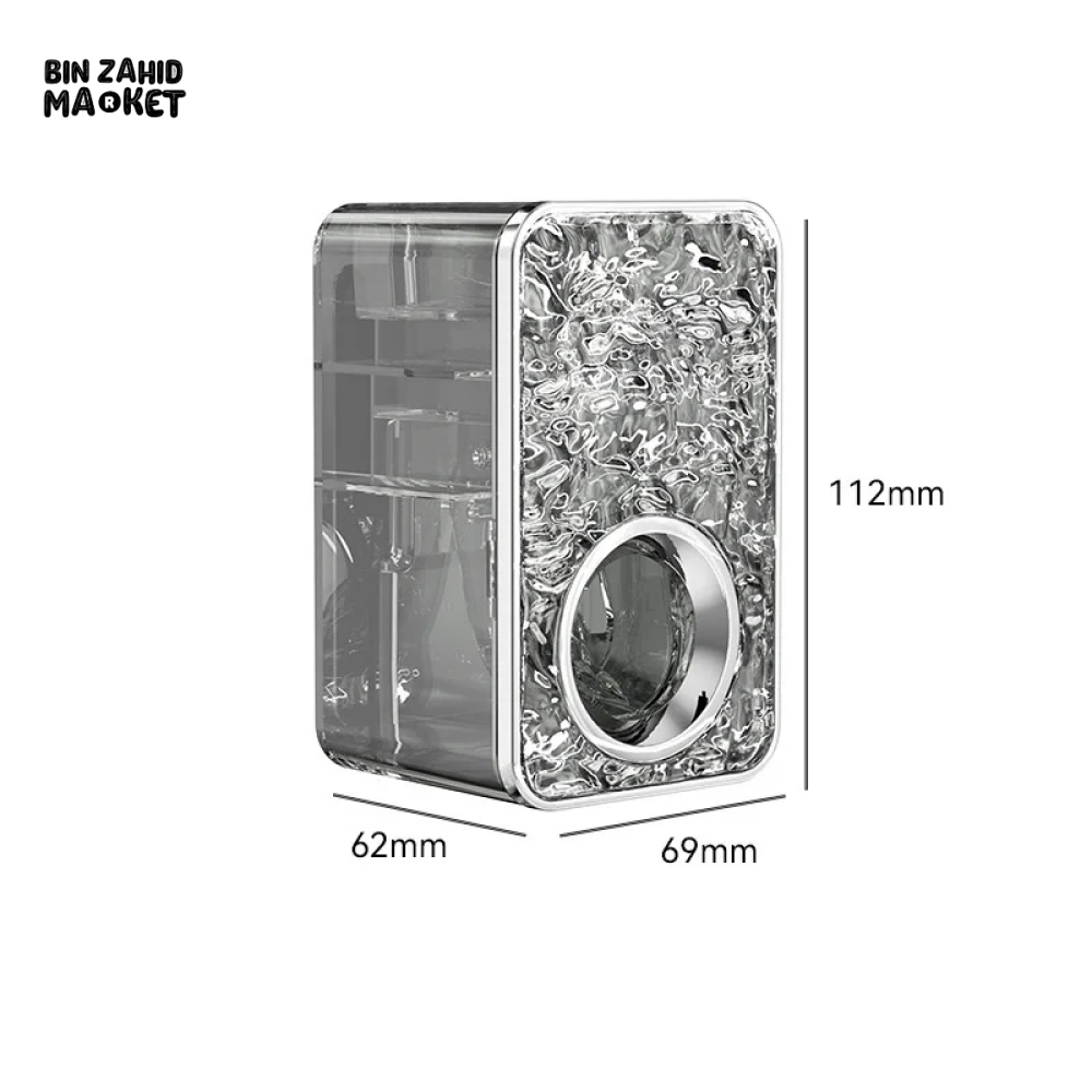 This wall-mounted automatic toothpaste dispenser and toothbrush holder offers a hygienic and convenient solution for bathroom organization. Designed to dispense toothpaste effortlessly with a simple press, it reduces mess and waste. The integrated toothbrush holder keeps brushes neatly arranged and accessible, while the additional storage rack provides space for other essentials. Crafted for easy installation, this organizer enhances bathroom efficiency and promotes a cleaner, more orderly environment. Ideal for maintaining hygiene and saving countertop space in any modern bathroom.